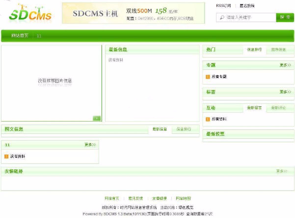 SDCMS企业版各个版本及升级包程序名称:时代网站信息管理系统(简称:SDCMS)程序版本:SDCMS WEB 2.3 免费版(最高版本就是2.3了,后来官方不在升级了,主攻php版本了)官方网站:Http://www.sdcms.cn使用手册:Http://help.sdcms.cn交流论坛:Http://bbs.sdcms.cn一、运行环境